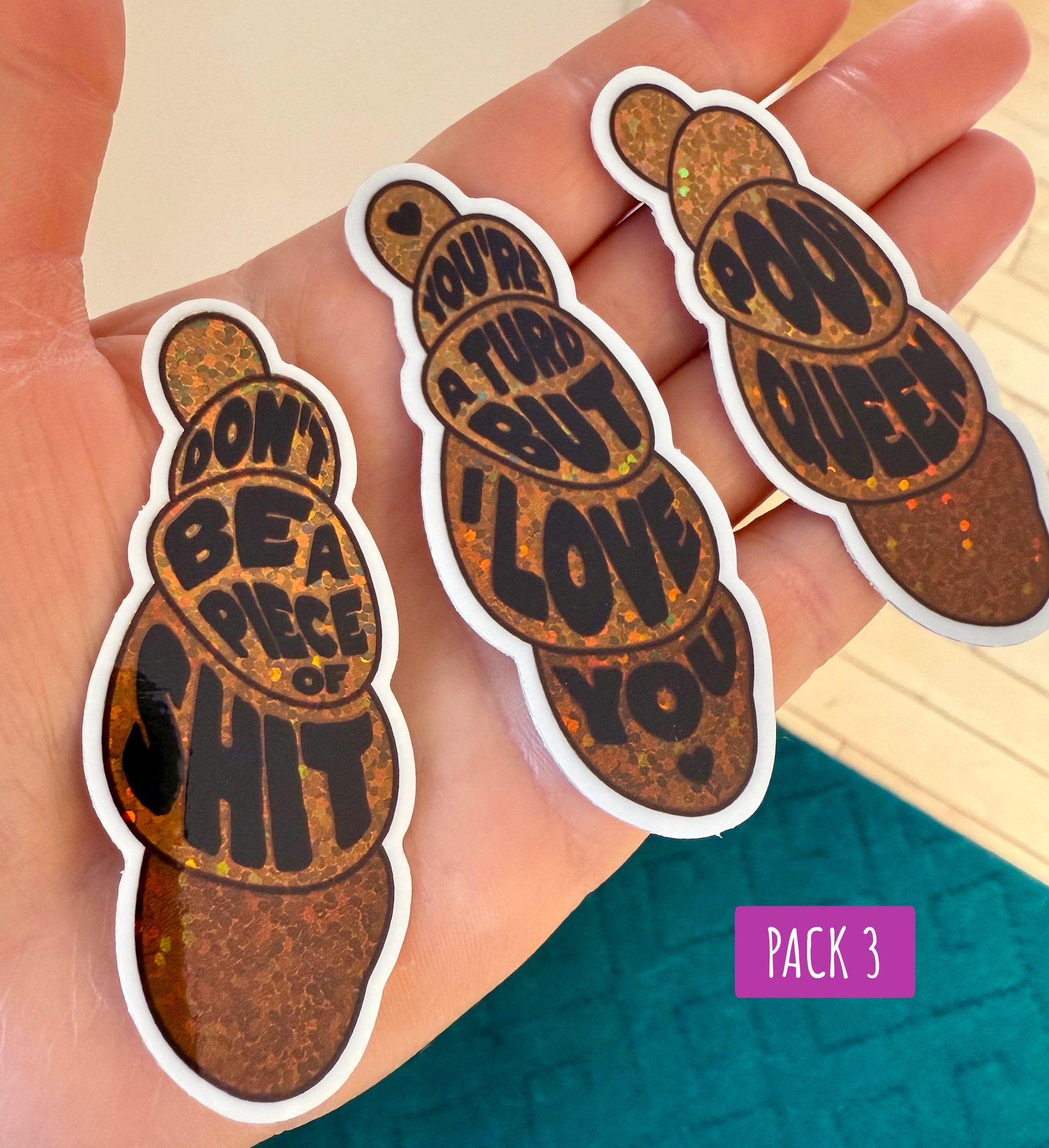 Pack 4: Plain glitter, "It's poo poo kaka time", "You're a turd but I love you"