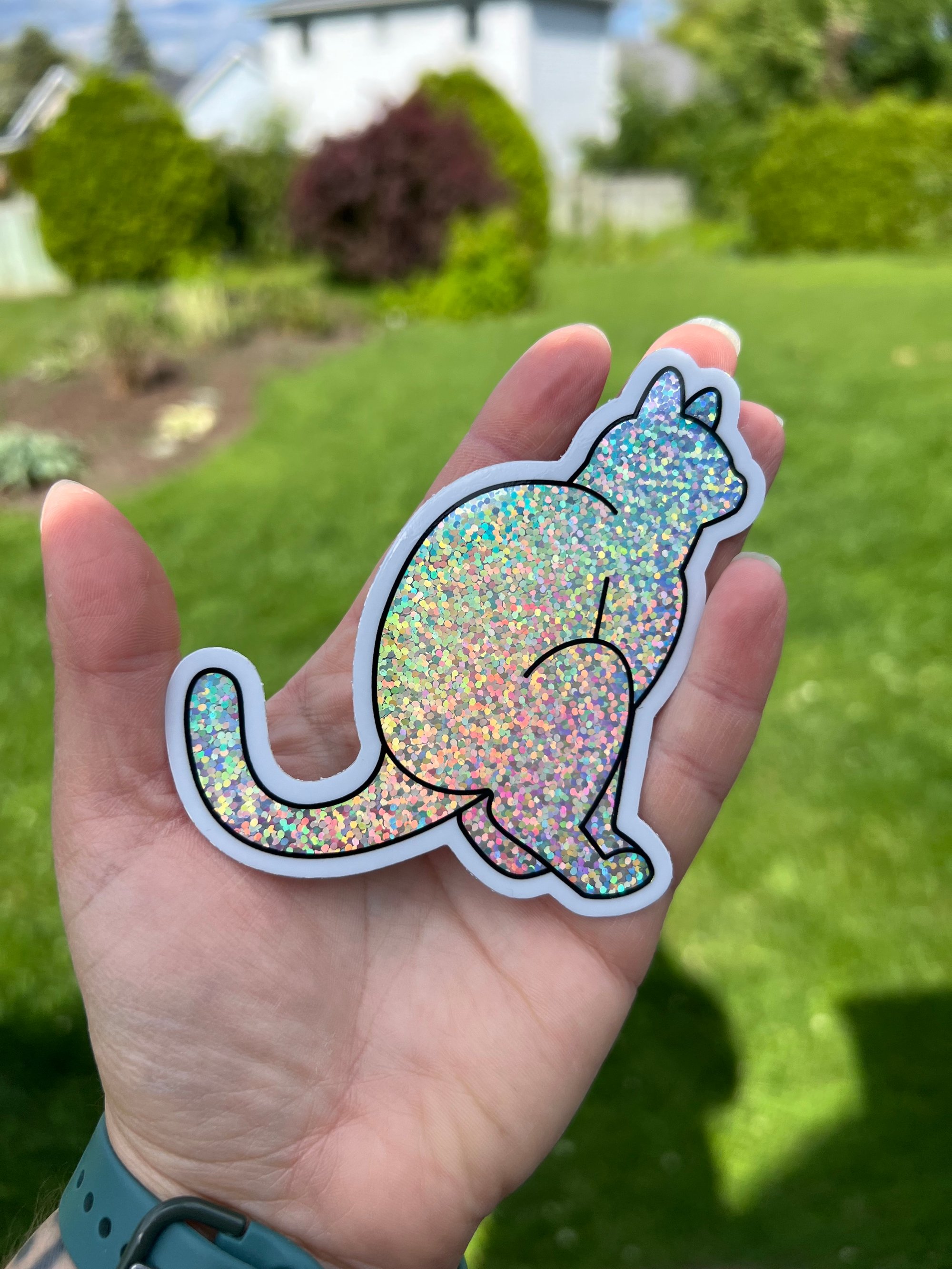 White/Grey Cat Pooper Sticker (Large) - š Glitter